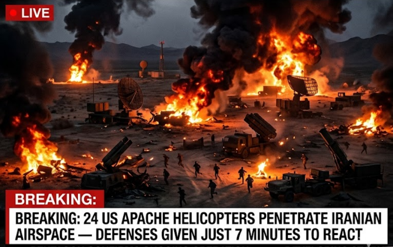 In a high-intensity display of modern military strategy, a formation of 24 Boeing AH-64 Apache helicopters reportedly penetrated Iranian airspace, executing a rapid and coordinated incursion that left local الدفاع systems with just seven minutes to detect, assess, and respond. The operation highlights the سرعة and precision that define contemporary aerial warfare, where timing and عنصر surprise can determine the outcome of an entire mission within minutes.