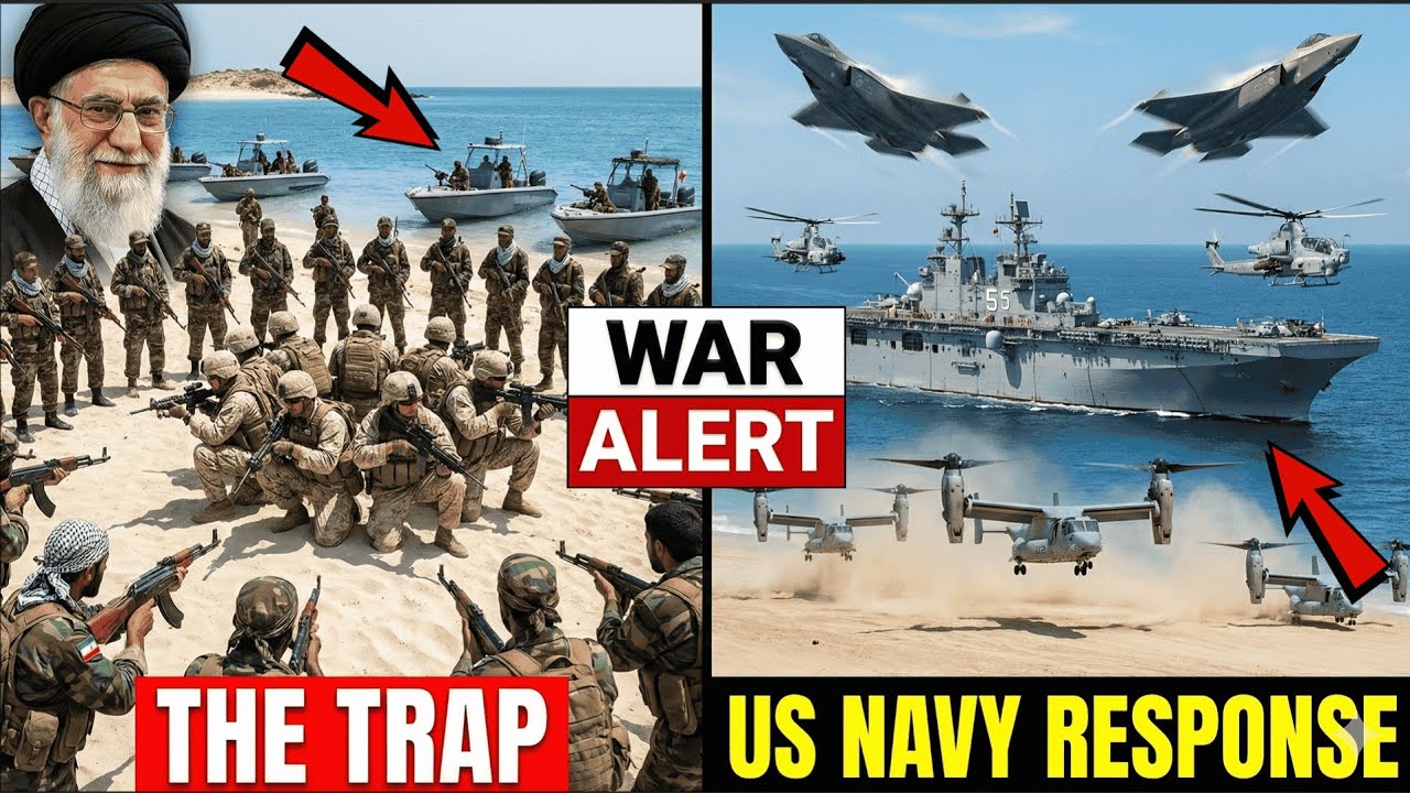 A high-risk overnight confrontation in the Strait of Hormuz escalated dramatically at approximately 4:18 AM local time, when Iranian forces allegedly attempted to encircle and capture a group of eight U.S. Marines operating on a remote island in the strategic waterway. The incident quickly triggered a large-scale U.S. military response, culminating in a rapid extraction operation that reportedly caught Iranian units off guard.