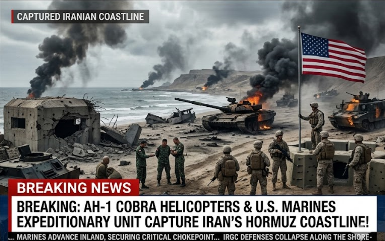 In a stunning turn of events that marks a dramatic escalation in the ongoing conflict with Iran, sources are reporting that advanced AH‑1 Cobra attack helicopters and a U.S. Marine Expeditionary Unit (MEU) have successfully seized control of strategic positions along Iran’s Hormuz coastline. According to defense analysts and battlefield sources, this operation represents one of the boldest ground manoeuvres by American forces in the Middle East in decades, as Washington pushes to break Iran’s hold over the vital Strait of Hormuz shipping lane.