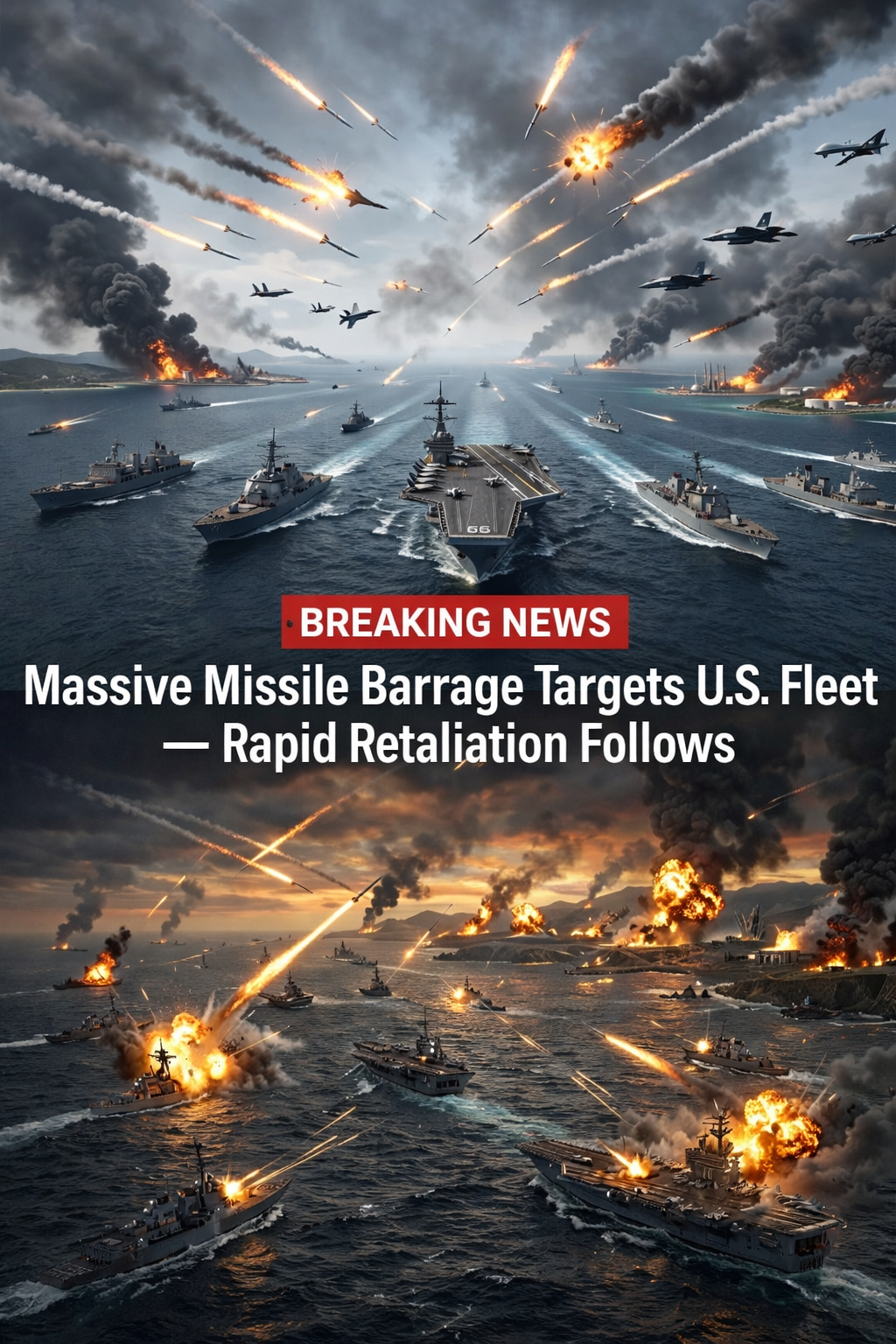 A serious flare-up at sea has been reported after a massive wave of missiles was launched toward U.S. naval forces positioned near the Strait of Hormuz, marking one of the most intense confrontations in the conflict to date.