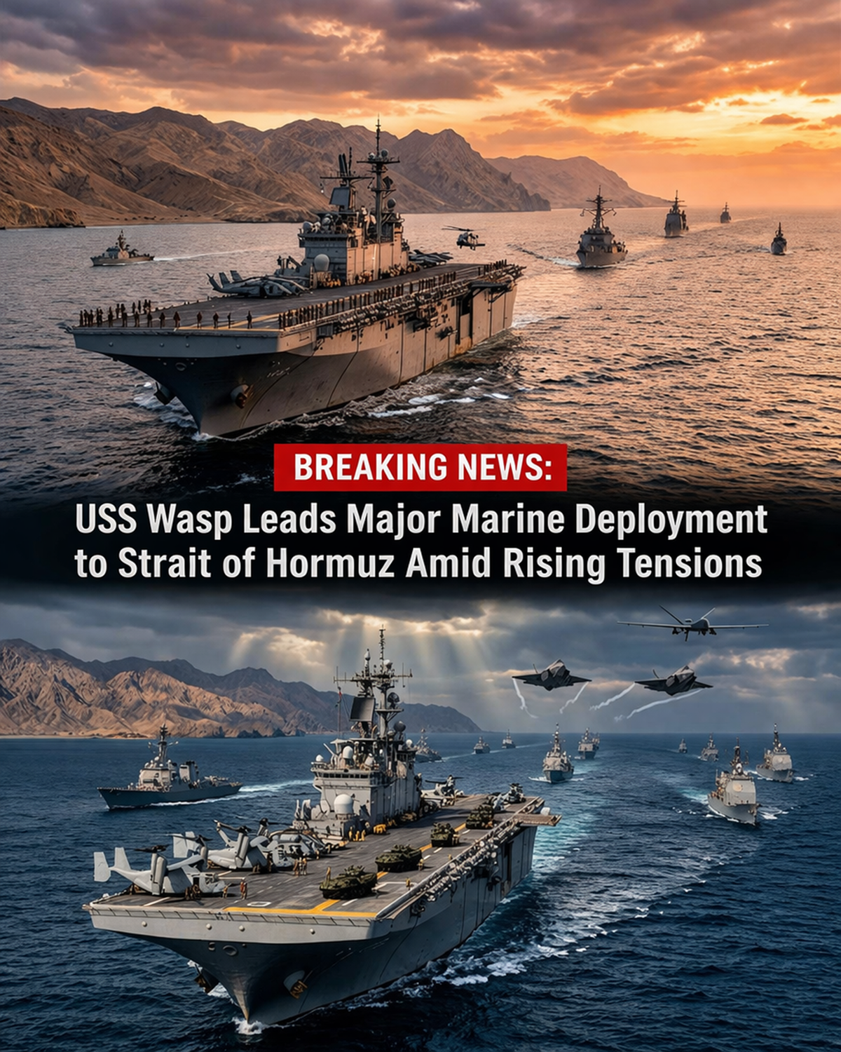 A major U.S. military operation is currently in motion, led by the amphibious assault ship USS Wasp, as it directs a substantial deployment of Marines toward the Strait of Hormuz—one of the most critical maritime chokepoints in the world.