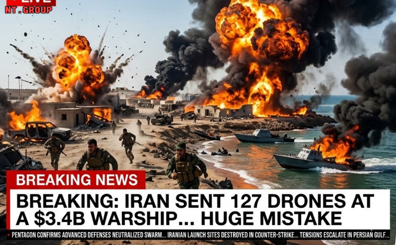 There is no verified evidence that Iran launched exactly “127 drones” at a single $3.4B U.S. warship in one specific battle like this.