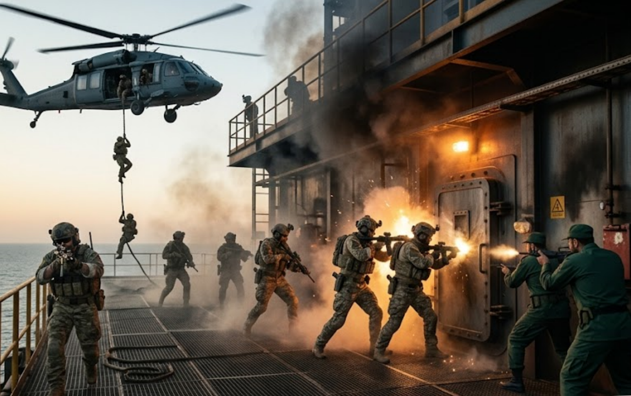 In a highly dramatic escalation of the U.S.–Iran war, U.S. special operations forces — including members of the elite Navy SEALs — reportedly carried out a daring raid on an Iranian oil platform in the Strait of Hormuz, a critical chokepoint for global energy supplies. The operation marks one of the most overt ground‑level confrontations between American forces and Iranian infrastructure since the conflict began, and it has sent shockwaves through Tehran and world capitals alike.