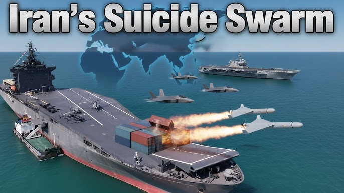Dozens of drones lifting off from a single vessel—spreading across the sky, forming a moving شبكة of surveillance and potential attack power. Iran’s so-called “drone carrier,” a converted ship capable of launching scores of UAVs, was designed for exactly this moment.
