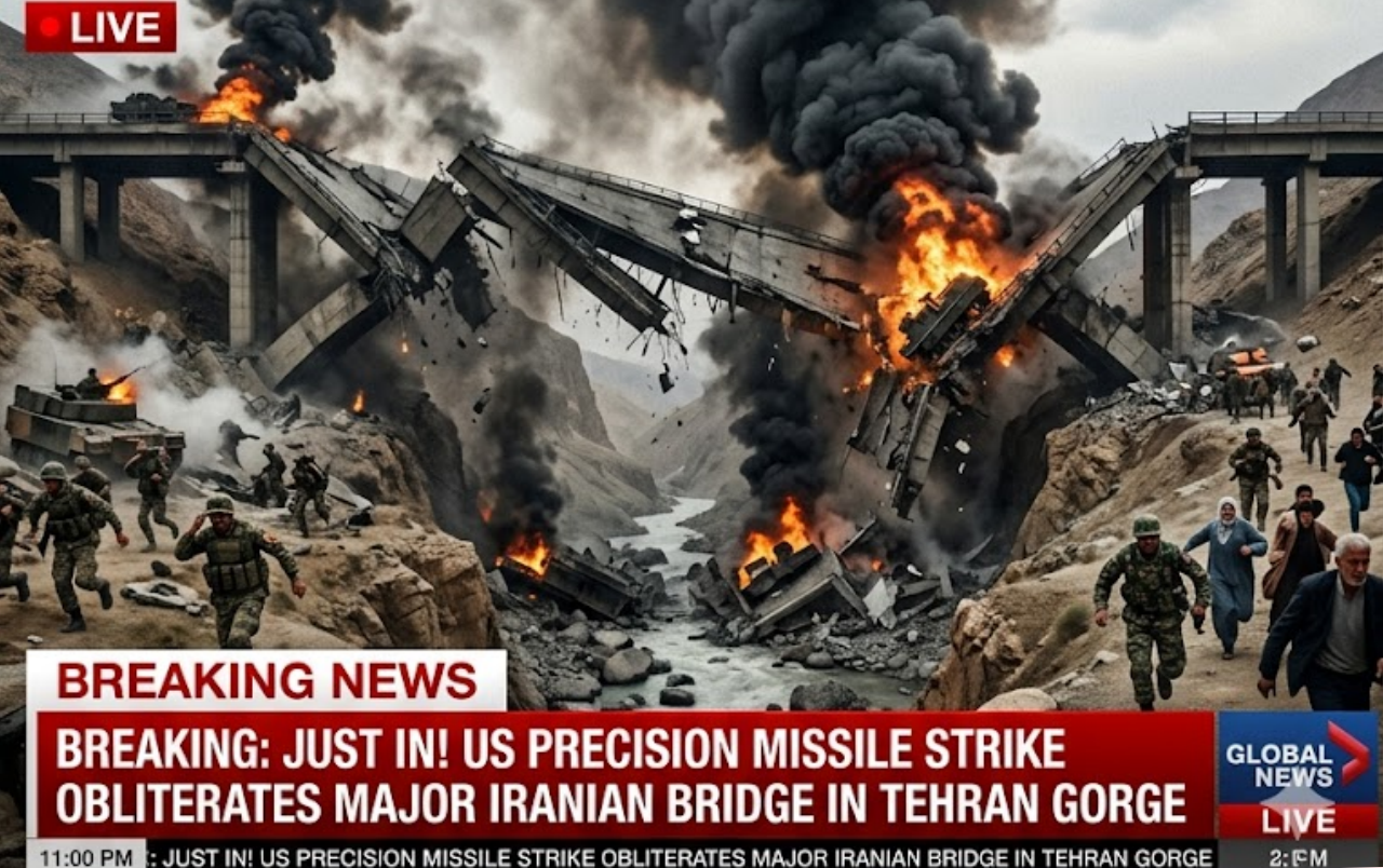 A major escalation in the ongoing U.S.–Iran conflict has unfolded following reports that American forces carried out a precision missile strike targeting a key bridge near Tehran, causing catastrophic structural collapse and raising fresh concerns about the widening scope of the war. The attack, reportedly conducted with high-precision munitions, struck a critical transport link in the mountainous corridor west of the capital, an area often described as a vital artery connecting Tehran to surrounding regions.
