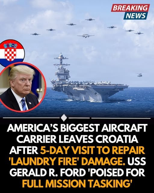 The world’s most advanced warship is back on the move as the USS Gerald R. Ford departs Croatia following a swift maintenance stop to address internal damage. While a “laundry fire” might sound minor to some, the high-tech systems on a Ford-class carrier require specialized attention to ensure total operational readiness.