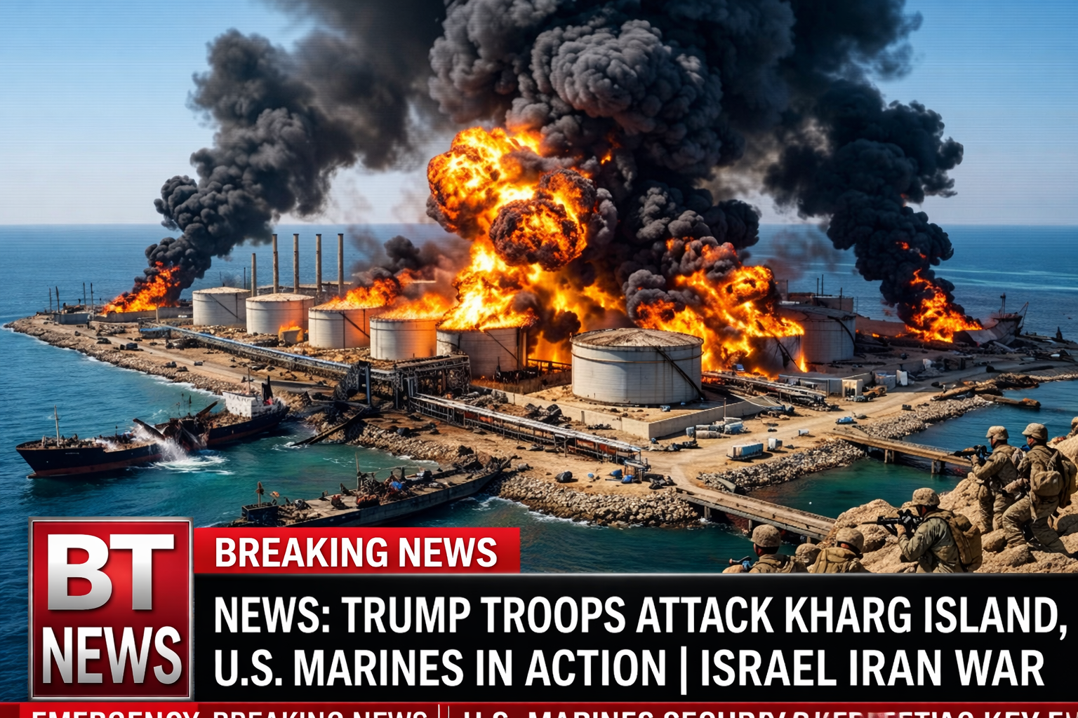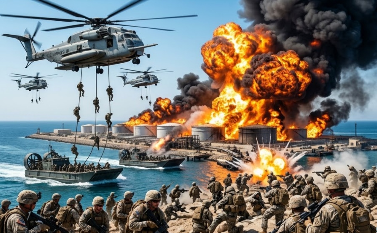 In a bold and highly perilous development in the Israel–Iran conflict, U.S. forces under President Trump have reportedly carried out a direct military operation against Kharg Island — Iran’s primary oil export hub in the Persian Gulf. Backed by extensive air support, American Marines targeted the island in what appears to be a strategic attempt to disrupt Iran’s energy exports and weaken its economic backbone.