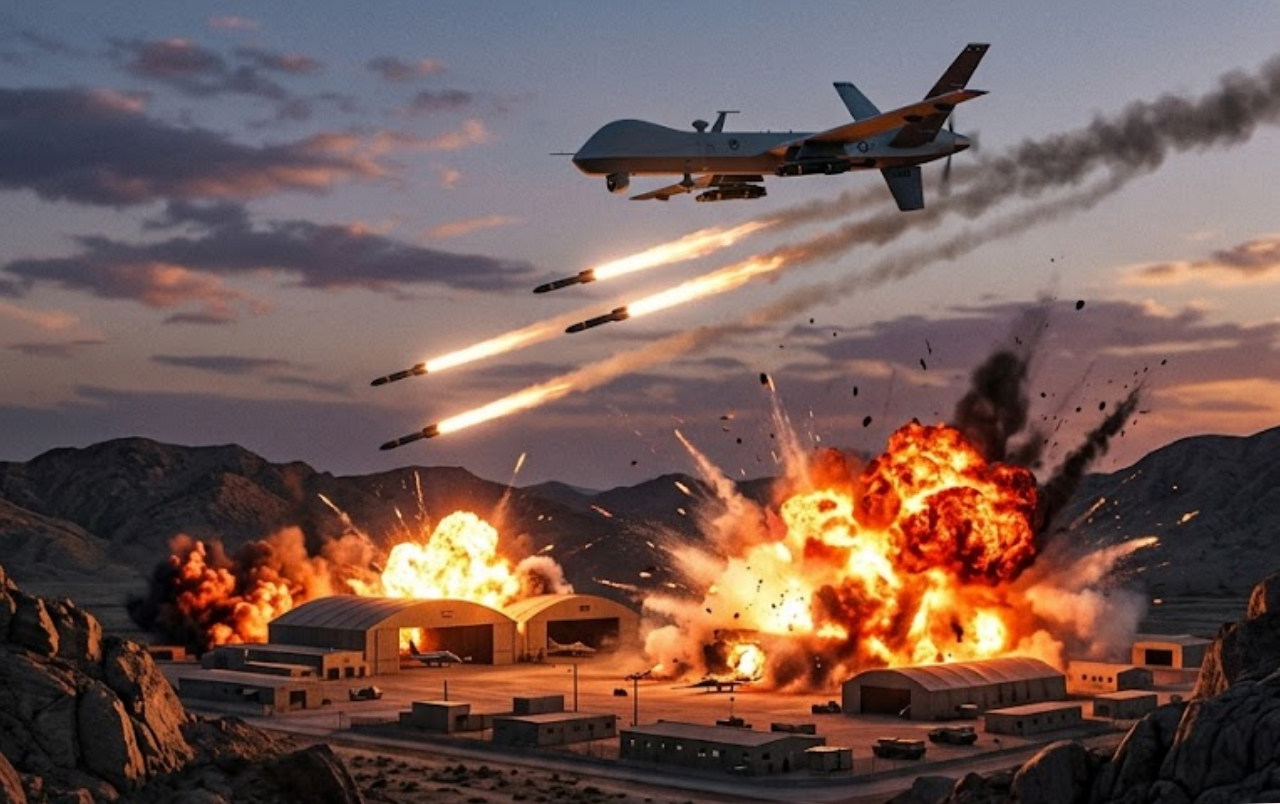 A dramatic new development has emerged from the intensifying conflict in the Middle East, as reports describe a highly precise U.S. drone strike targeting a previously undisclosed Iranian airfield near Tehran. The operation, carried out with advanced unmanned aerial systems, is being portrayed as a decisive blow against Iran’s covert aviation and drone infrastructure.