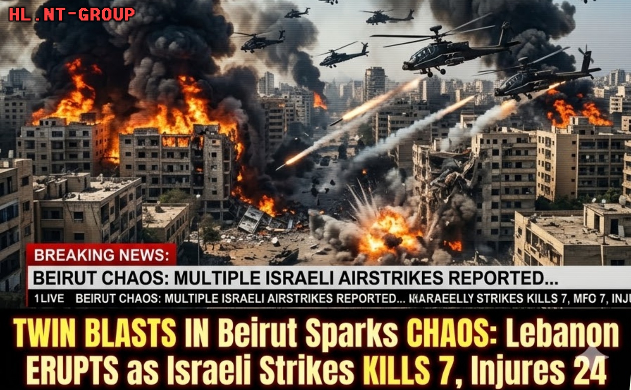 Twin explosions in Beirut have sent shockwaves across Lebanon, triggering chaos, fear, and a rapid escalation in regional tensions following reported Israeli airstrikes that killed seven people and injured at least 24 others. The blasts, which struck densely populated urban areas, caused widespread destruction to buildings, shattered infrastructure, and forced civilians to flee in panic as emergency services rushed to the scene.